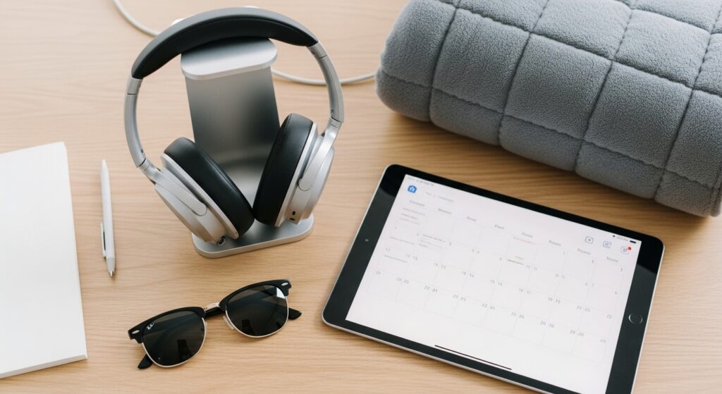 - 聴覚過敏: ノイズキャンセリング機能付きのイヤホンやヘッドホン、耳栓などを活用し、苦手な音をシャットアウトしましょう。