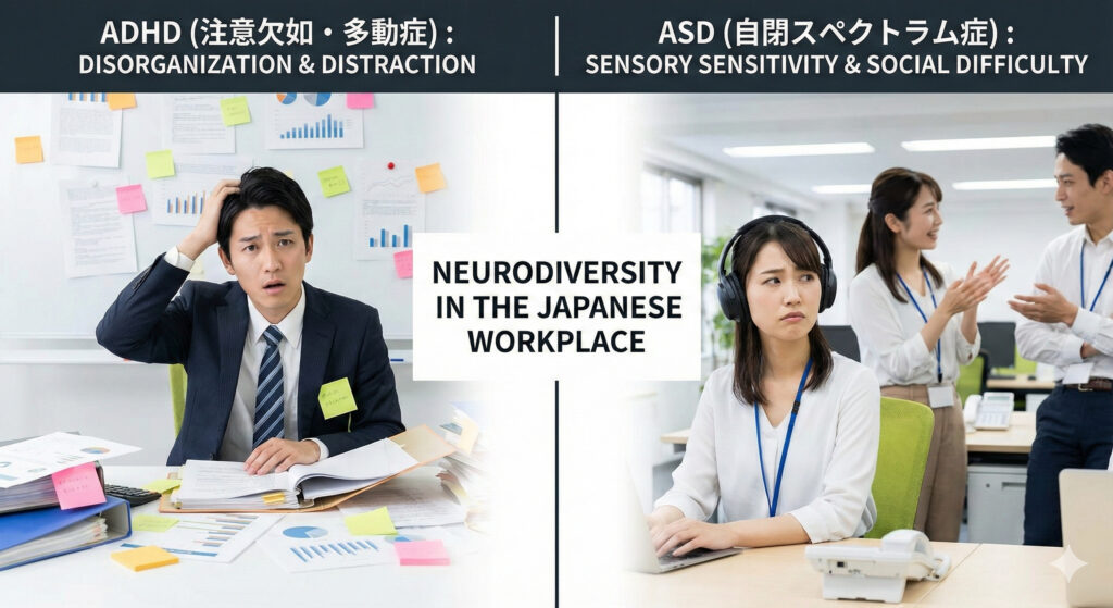もしあなたが今、このような悩みを抱えているなら、それはあなたの「意志が弱い」からでも「甘え」でもありません。発達障害(ADHDやASD)の特性と、職場環境の「ミスマッチ」が起きている可能性が高いのです。