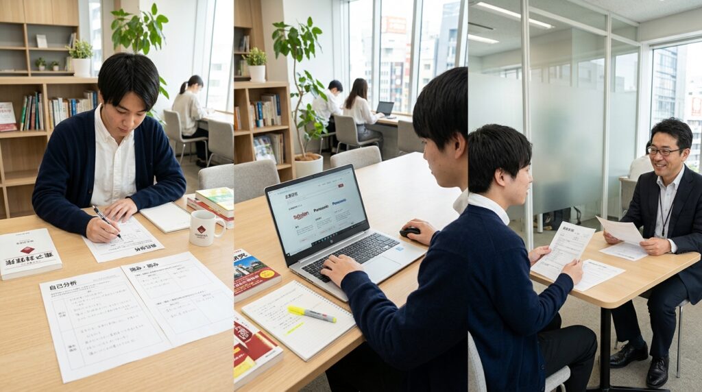 | 大学3年・秋〜冬 | キャリアプランナーとの面談、求人紹介開始、ES作成・面接対策、インターン参加 |