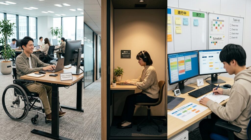 障害者枠で入社すると、自分の障害特性に応じた配慮を企業に求めることができます。たとえば通院のための時短勤務、感覚過敏に配慮した座席配置、業務指示の出し方の工夫など、内容は一人ひとり異なります。新卒で社会人経験がないからこそ、最初から配慮のある環境で仕事に慣れていけるのは大きなメリットです。