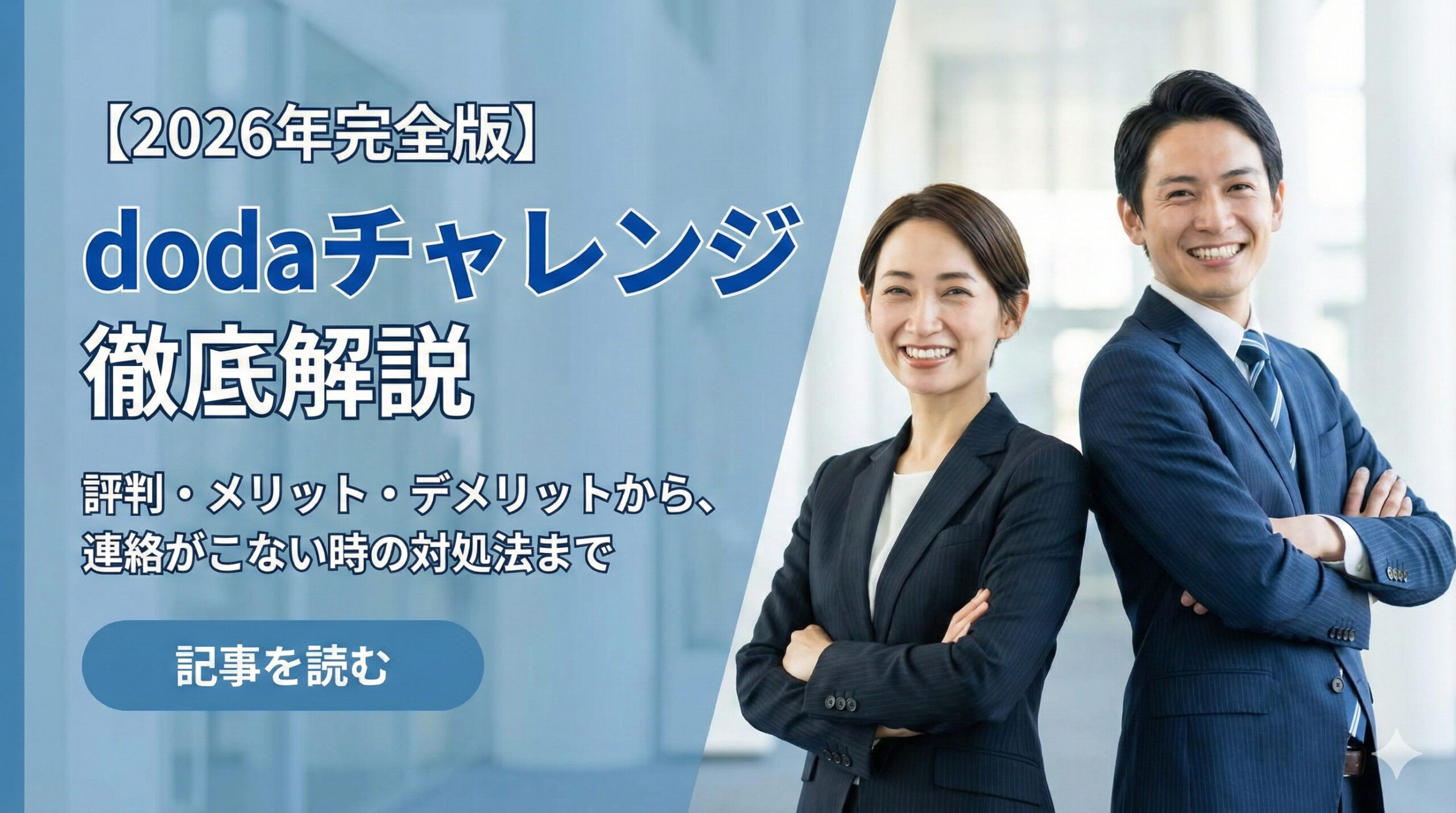 この記事では、dodaチャレンジの利用を検討しているあなたのために、以下の情報を一挙にまとめました。