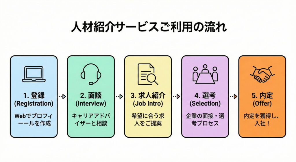 もちろん、「連絡がこない」「断られる」といった可能性はゼロではありませんが、それはどのエージェントでも同じことです。まずは無料登録をして、アドバイザーに相談してみることから始めてみませんか?
