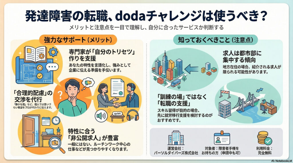 【2026年最新】発達障害でdodaチャレンジを利用すべき?評判・メリット・デメリットを徹底解説