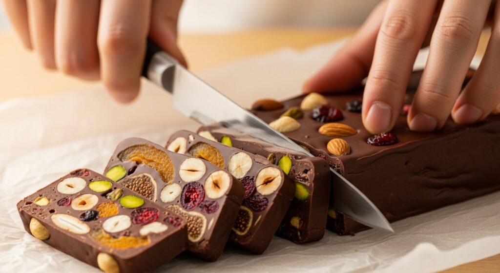 ドキュメンタリーでありながら、画面に映るチョコレートの美しさは息をのむほどです。色とりどりのドライフルーツやナッツが散りばめられたテリーヌ、1枚ずつ手切りされるふぞろいなピース。映画を観終わった後に「久遠チョコレートを食べてみたくなった」という感想が非常に多いのも、うなずけます。