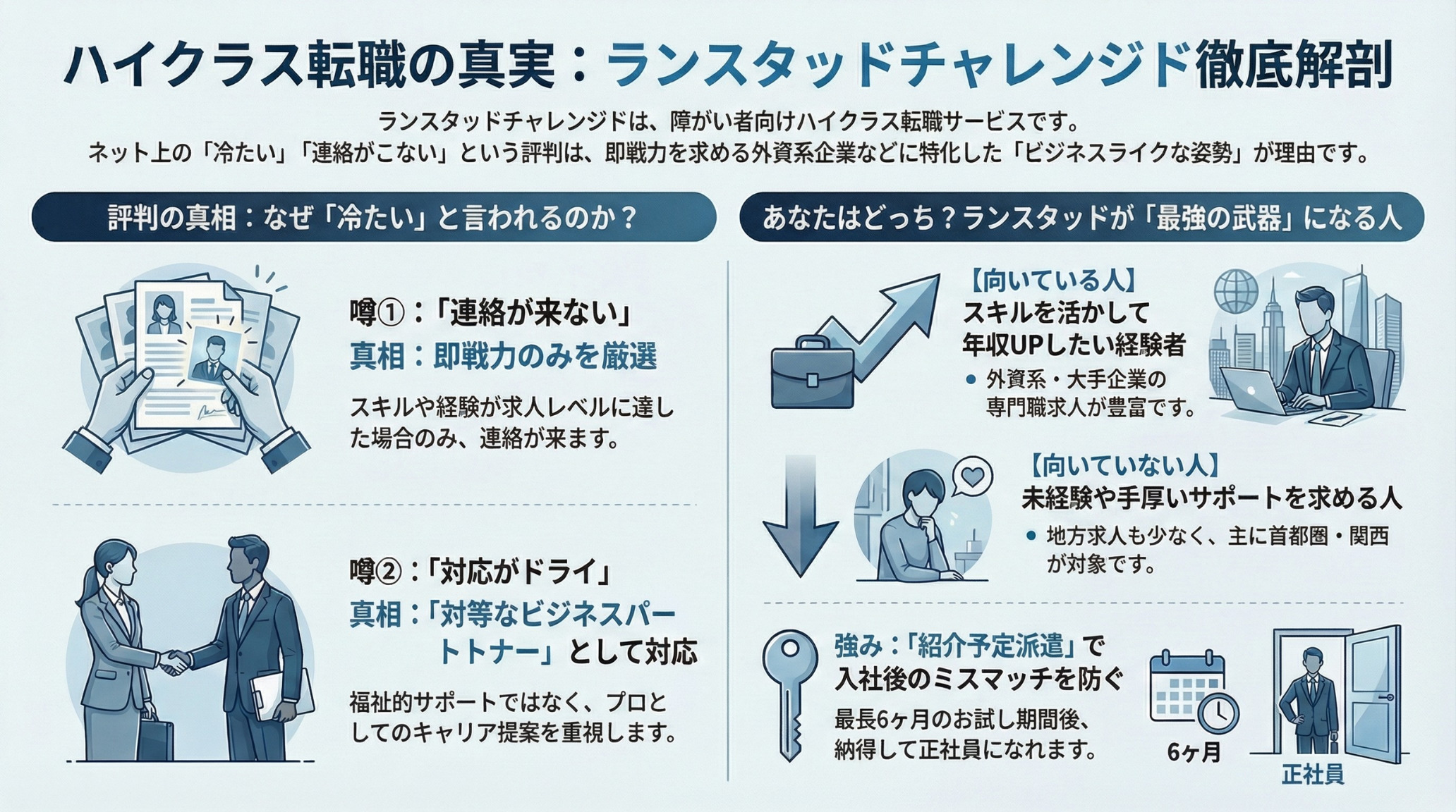 結論から言うと、ランスタッドチャレンジドは「すべての人におすすめできるわけではありません」。しかし、「条件を満たす人にとっては、年収アップとキャリア形成を叶える最強のパートナー」となります。