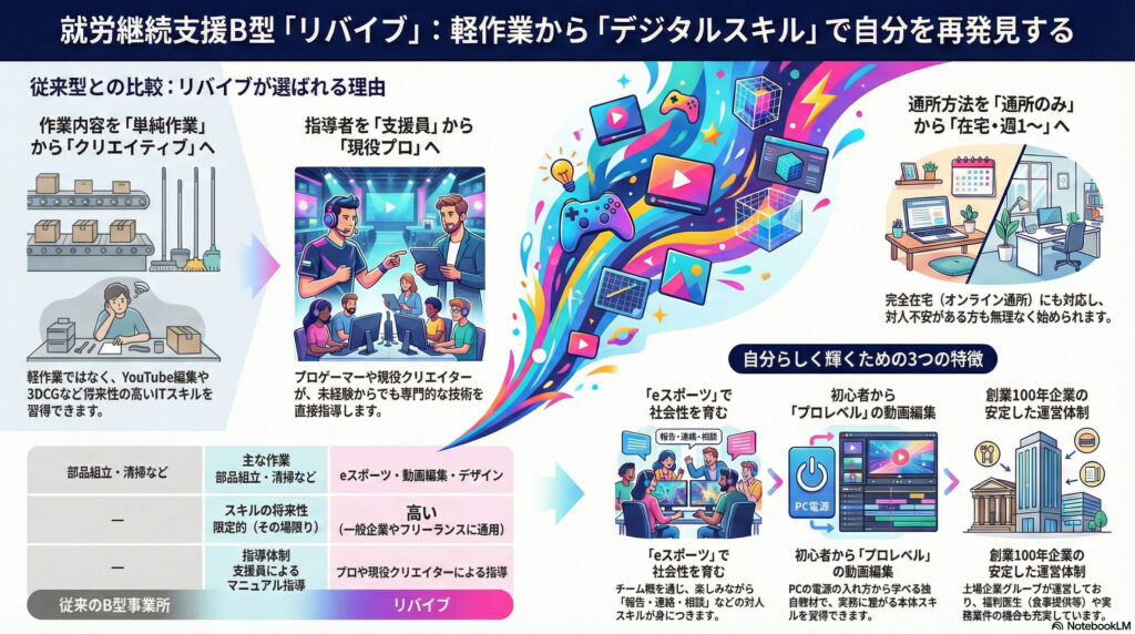 【比較表で解説】リバイブが他のB型事業所と決定的に違う理由