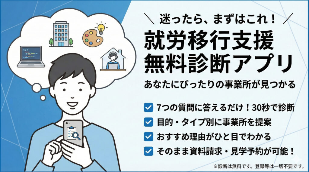もしあなたが一人で悩んでいるなら、ぜひ一度、お近くの就労移行支援事業所に相談してみてはいかがでしょうか。あなたの未来を拓く、新たな扉がそこにあるかもしれません。