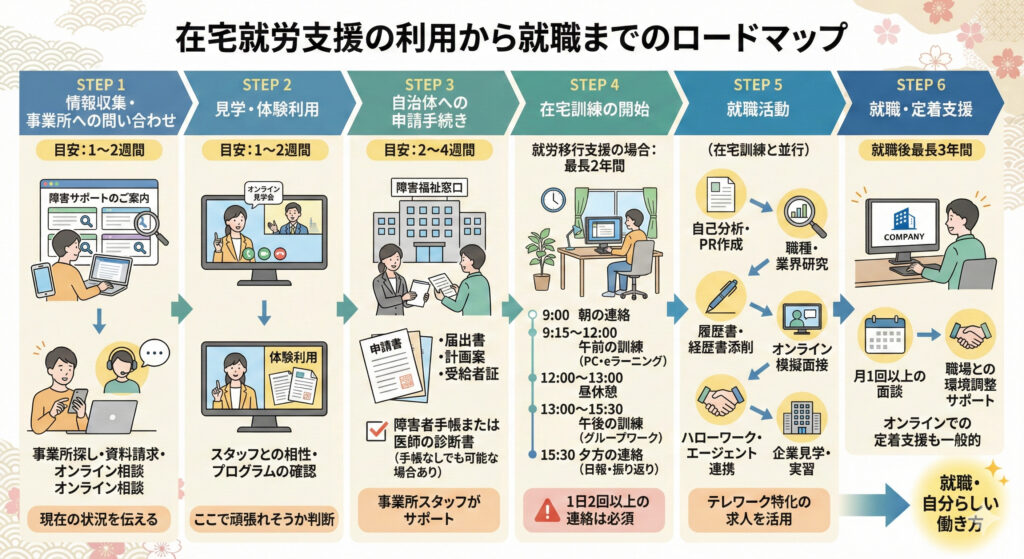 在宅就労支援の利用開始から就職までのロードマップ